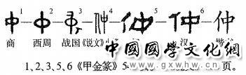 談?wù)?ldquo;中國”之“中”,必然牽涉與之相關(guān)的“伯仲”之“仲”。在《字源》一書中,董蓮池先生對“仲”字的字形演變進(jìn)行了梳理,其排譜如下: