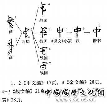 白于藍(lán)先生對“中”字的字形演變排譜如下: